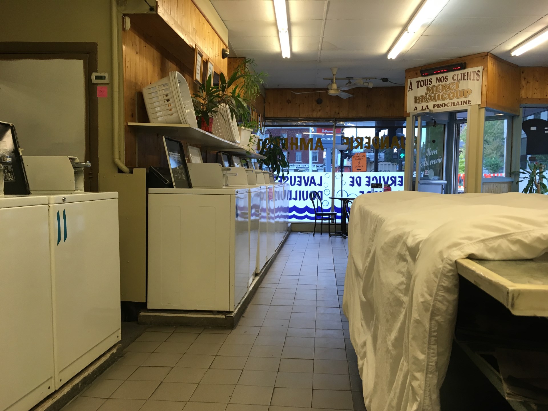 Well rested I started my last journey with the Jeep. The drive from St.Pascal to Montreal was rather boring, simply turn cruise control on and listen to the music. I arrived exactly at the time when I was due to give the car back. Over the past 5 days I drove 2276 km with the Jeep. After having checked in at the hotel I took my dirty things (the clothes) and went for a walk to the nearest washing saloon. Once again I was having a rather funny conversation in Frenglish, this time with the guy working there.