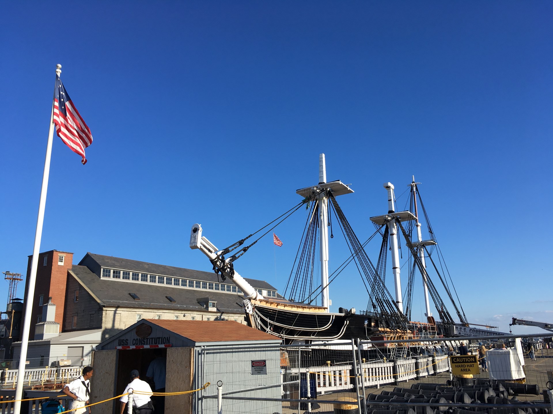 And once again I had luck with the weather. In Boston they created the Freedom Trail, a brilliant idea for tourists. The Freedom Trail is a route marked with red bricks starting at a garden in the heart of Boston. From there on this trail guides the traveler along most of the historic buildings in Boston. The trail ends at the USS Independence in the harbor. Unfortunately the ship wasn’t in the water, at the moment it gets overhauled and is in a dry dock.
