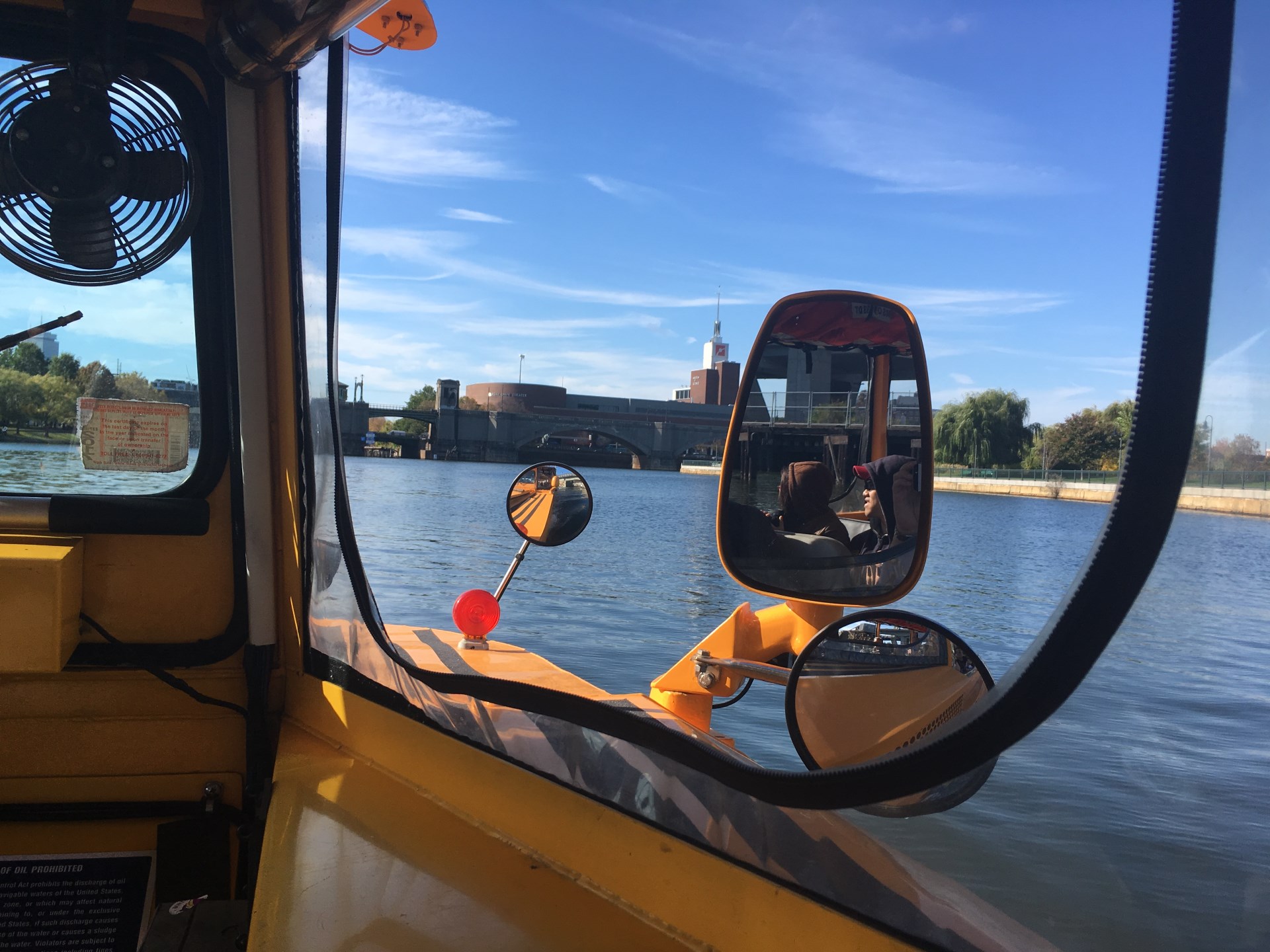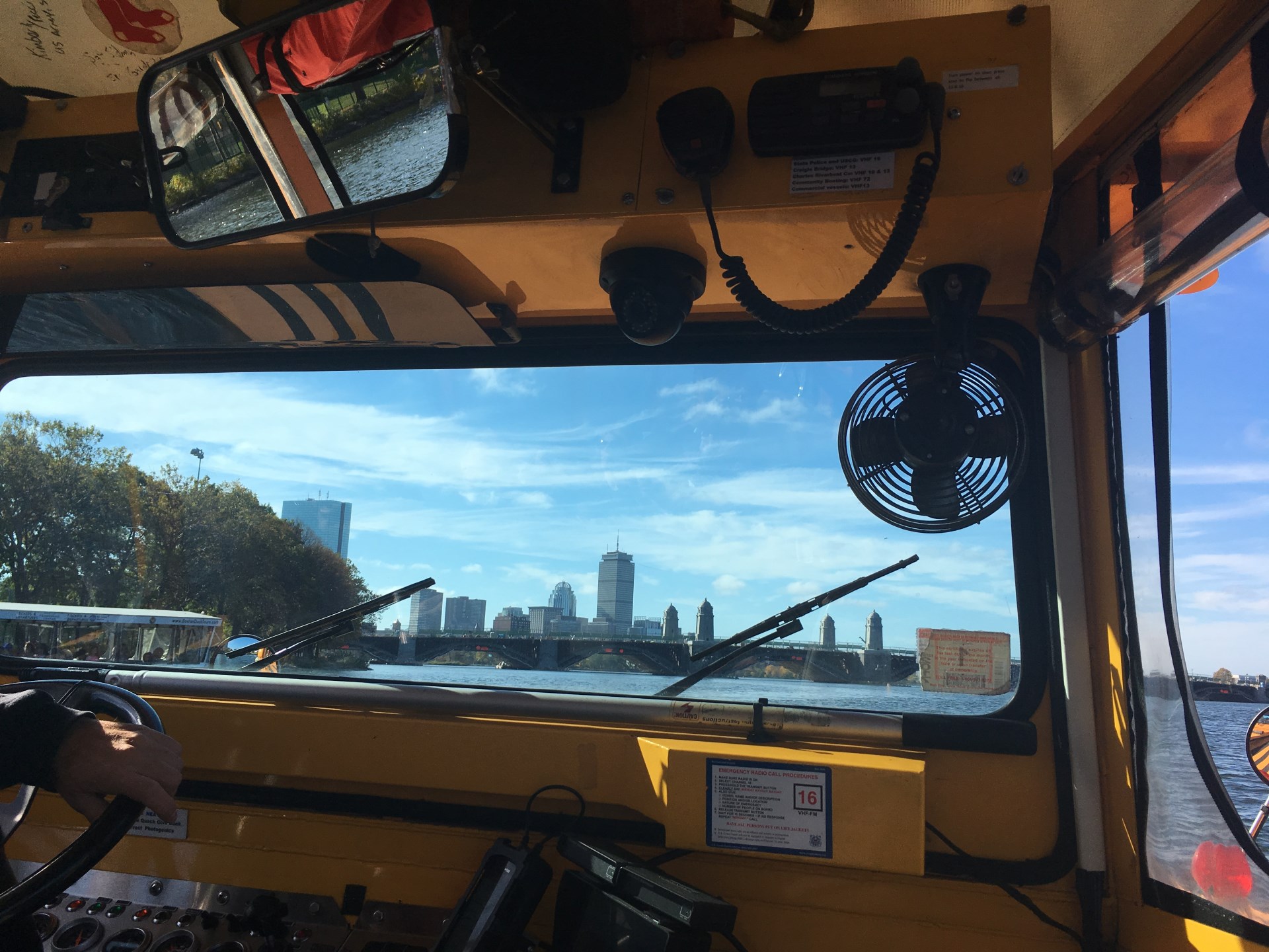While walking around yesterday I saw these amphibian vehicles driving around the town. I remember having heard about them before and decided to book a trip with one of these buses. In order to save some bucks I took an early tour and had therefore to stand up “early” (The alarm clock went of at 8 AM =). Our driver Major Tom was at the same time our tour guide. While driving through the city he told us all kind of funny and interesting stories. The highlight of the trip was of course driving around the river in the bus.