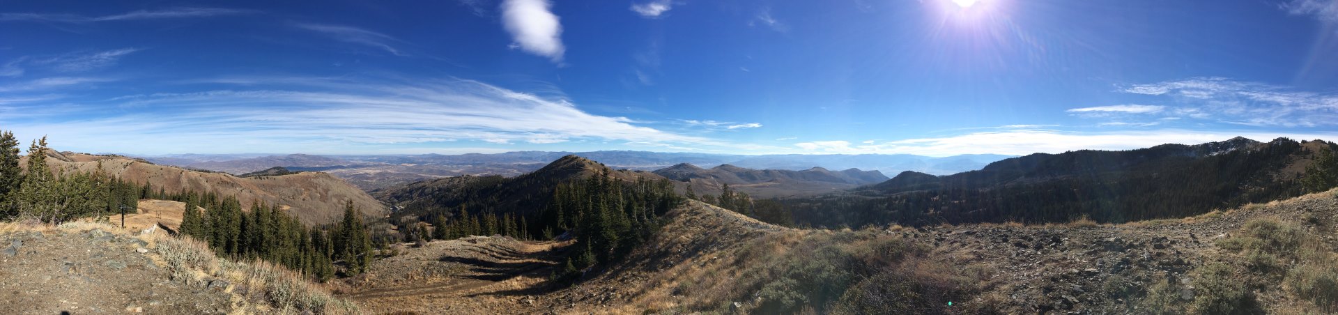 At nearly 10’000 feet our climb came to a halt as we reached to top of the pass. Infused with American exploration spirit we (especially I) decided to tackle the last few hundred feet by foot. After an exhausting climb to the top walked on a path not worthy of being called a path we finally passed the 10k feet mark (3048 m). As you can see in the pictures the landscape differs from the mountains in our Swiss Alpes. I wouldn’t call the peaks mountains but rather hills compared to the stiff landscape in the Swiss skiing resorts, regardless of their height above sea level. Without having had the pleasure of riding down those hills with my skis I’m comfortable enough to say I would prefer the (steeper) slopes in my beloved mountain village Zinal =)