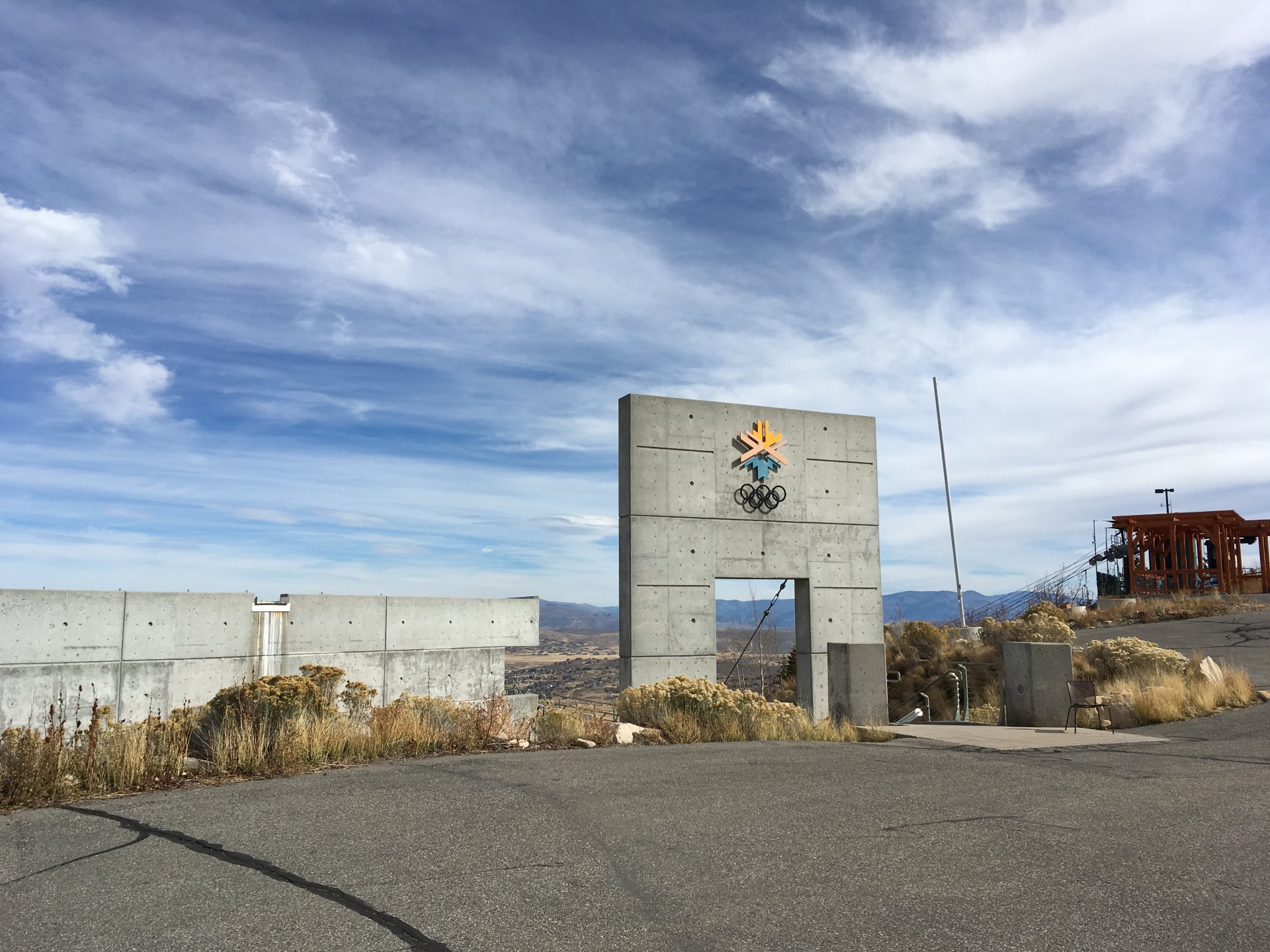 After enjoying the beautiful sights, we descended, first by foot and then once back in the Jeep by car. But not the same way we came but the other side down. This path was worthy of the “Rough Road” sign. Luckily it wasn’t long before we had properly paved road under our wheels again. After driving through some other ski resorts and Park City we visited one of the sites where the Olympic Winter Games of 2002 took place, the Utah Olympic Park. The two ski-jumps and the bobsled run are part of this Park. As you can see we could go right to the top of the bigger ski-jump. Simon Ammann won his first two Olympic Gold medals on the two jump here in Utah.