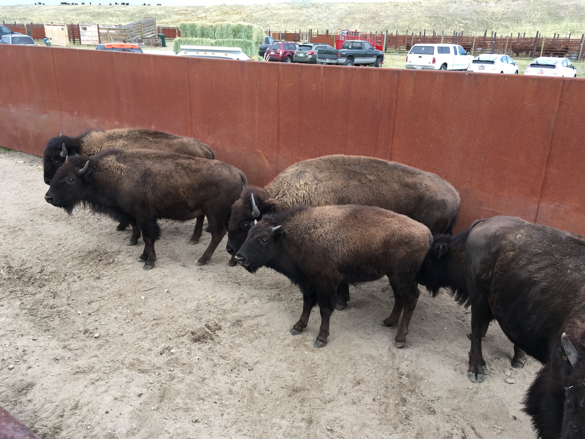 Bison are strange animals. They look like hairy cows and it looks awesome when they are walking (or whatever you call it when they move forward). It seems that they are very simple animals, when it’s dark they calm down and rest (they are lined up before being inspected and to calm them down they are kept in the dark). As soon as they see light they move towards it and you must be aware of that when you want to calm them down. They can jump up to 6 feet and run over 35 mph (ca. 1.8 m and 56 km/h in non-retard units) and they can die from stress. Amazing creatures but unfortunately for them very easy to hunt down.