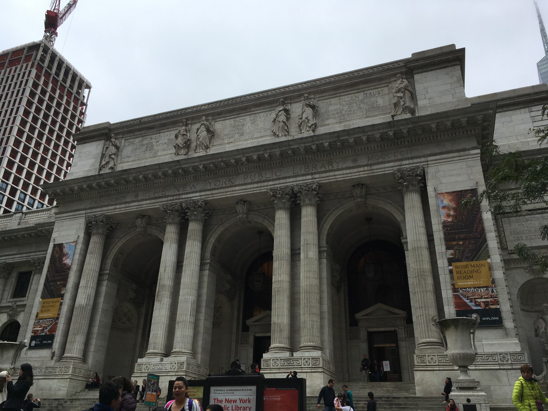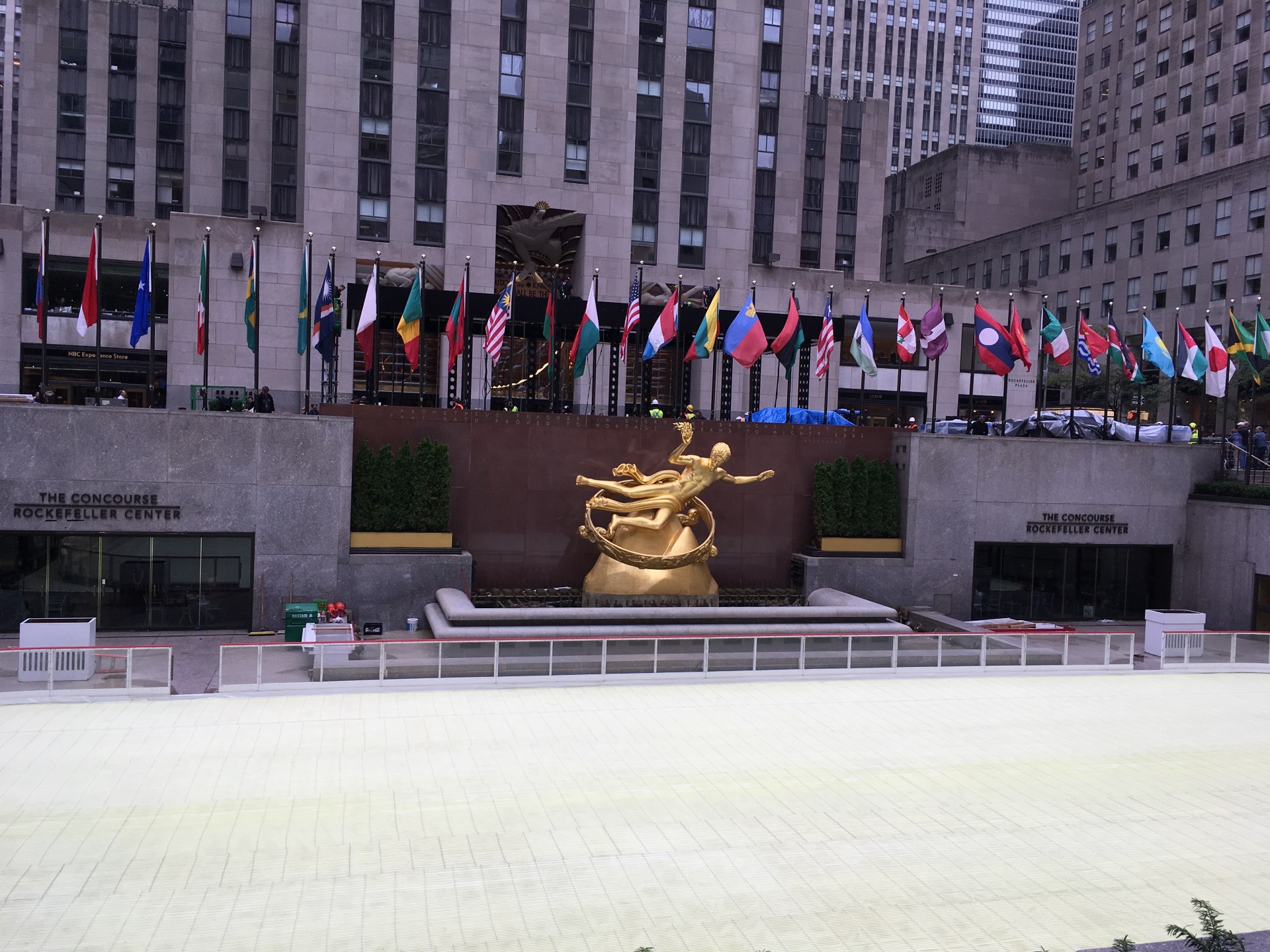 No more rain but the clouds remained. Having seen all the tall buildings only from the ground I thought it was time to see them from above. Therefore, I booked a combined ticket with a tour and a lift to the Top of the Rock. The tour gave an interesting insight over the whole Rockefeller Center (it’s more than one building, 22 to be exact). And because there was a woman that spent way more than her husband intended to on art, the whole center is decorated with pieces of art.